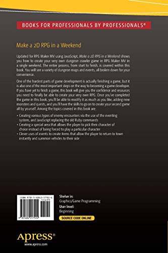 Our book store are happy to recommend the excellent Make a 2D RPG in a Weekend: Second Edition: With RPG Maker MV. With So many RPG Maker MV titles to choose from right now, it is sensible to go for a title that is recognized. Make a 2D RPG in a Weekend: Second Edition: With RPG Maker MV, written by Darrin Perez is in our opinion will be a superb purchase. This is true for all beginner aspiring game developers who is determined to make games using RPG Maker MV for Windows, Linux, Mac, Android & iOS while harnessing Javascript.
